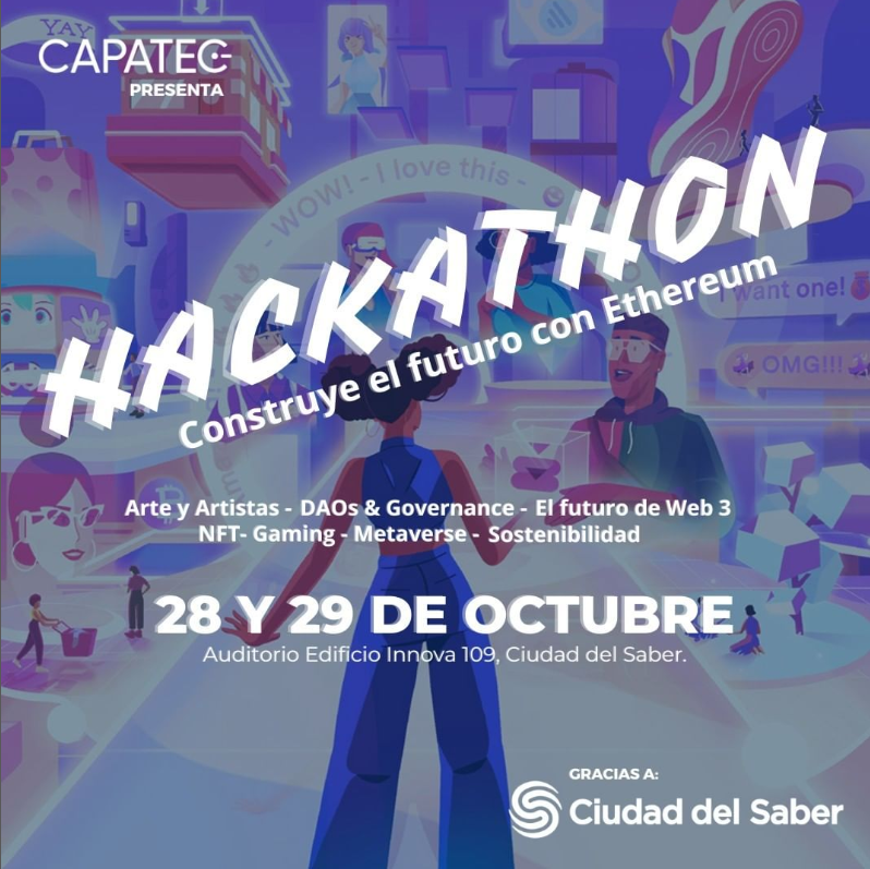 As part of the initiatives promoted by the CAPATEC Blockchain Committee, the first edition of the Hackathon “Build the future with Ethereum” arrives. A competition that seeks to bring together the best IT talent to find innovative solutions to problems through crypto assets. This year, the event will take place from October 28 to 29 at 8:00 am in the Main Hall of the Innova 109 Building in the City of Knowledge.